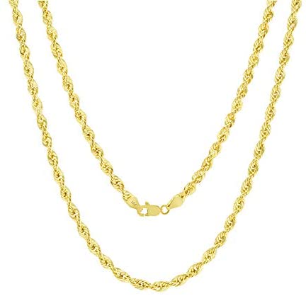 Nuragold 10k Yellow Gold 4mm Diamond Cut Rope Chain Pendant...