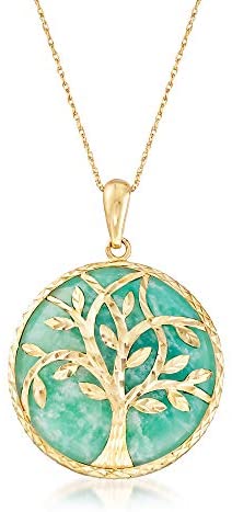 Ross-Simons Teal Amazonite Tree Of Life Pendant Necklace in 14kt...
