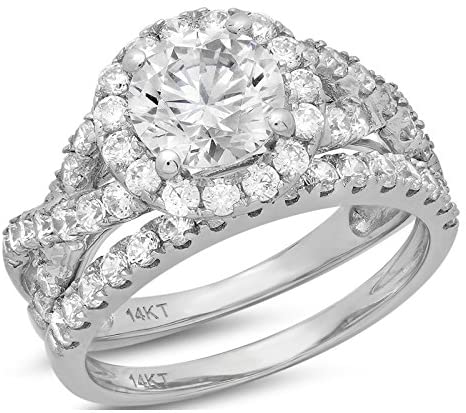2.40ct Round Cut Halo Split Shank Solitaire Accent Lab Created...
